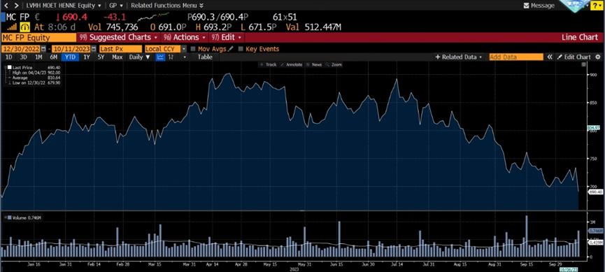 Today, LV (Louis Vuitton) $LVMH-Moet Hennessy Louis Vuitton(LVMUY)$ released its third-quarter report, and its stock price plummeted nearly 8% at one point, wiping out all the gains made earlier this year: