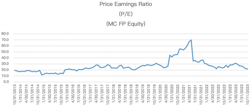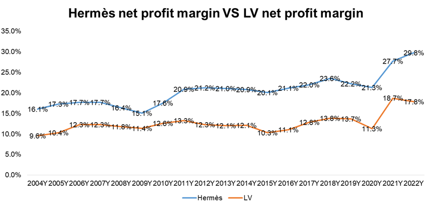 However, it is worth noting that LV's profitability significantly improved after the pandemic, with an adjusted net profit margin reaching 18.7% at one point, far above the historical average: