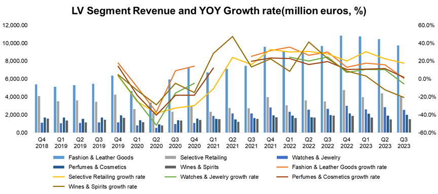 In specific terms, LV's overall third-quarter revenue was 19.96 billion euros, with only a 1% year-on-year increase, significantly below the analysts' expectations of 21.14 billion: