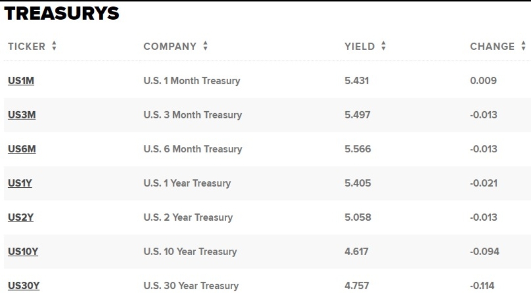 was down by more than 4 basis points at 4.614%. Earlier in the session, the 10-year yield hit a low of 4.544%, or its lowest level since Sept. 29. The 2-year Treasury yield