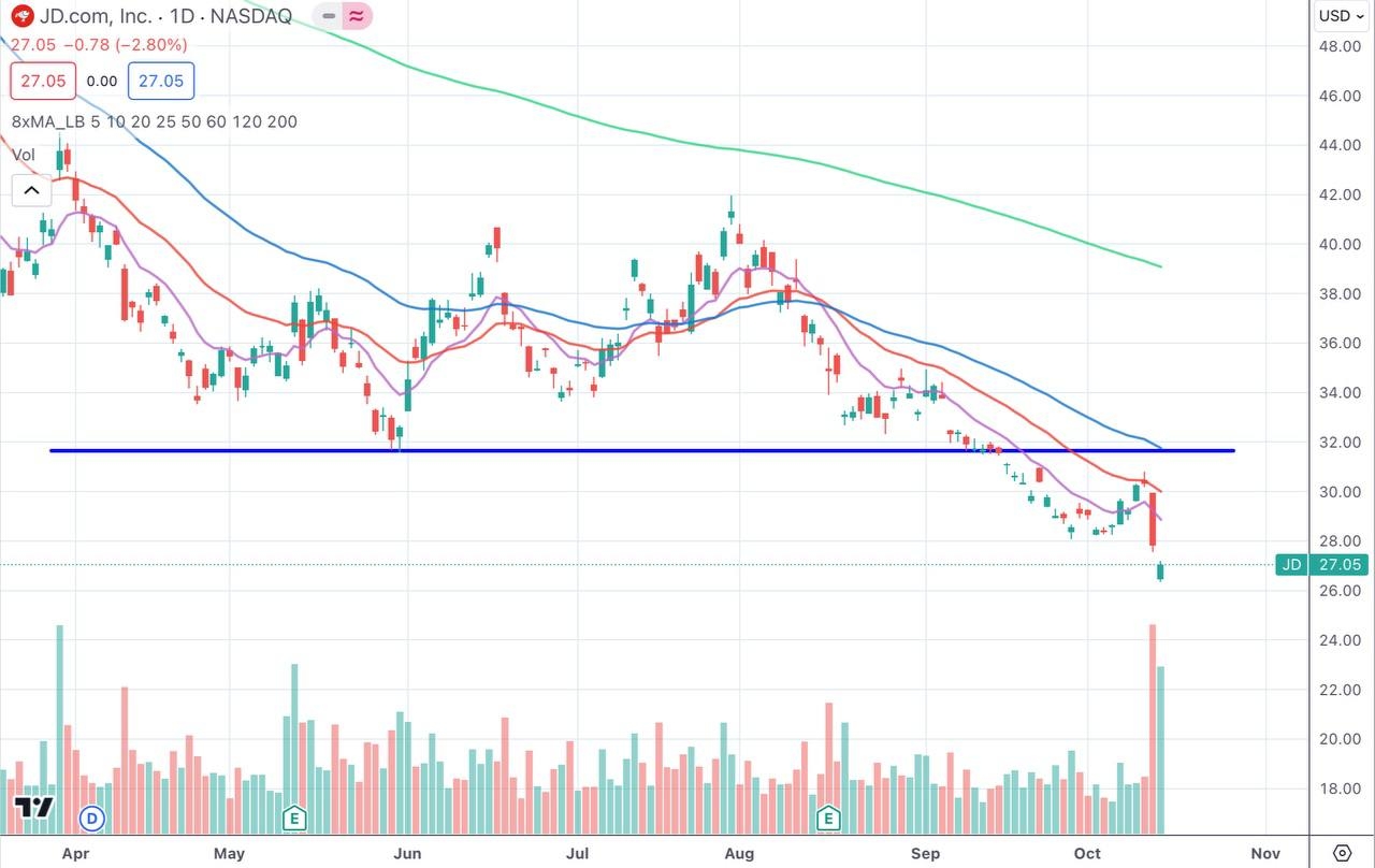 As compared to its rival PDD, JD is relatively weak in its share price. Very obvious downtrend and gap down plus breakdown last week which make to have a bearish vote for $JD.com(JD)$