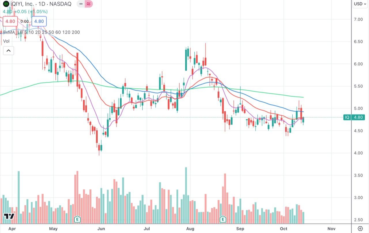 iQiyi chart is quite weak and currently the probability of breakdown the support will be high. EMA wise forms an obvious death cross. Nothing much to analyze for this stock but just$iQiyi Inc.(IQ)$