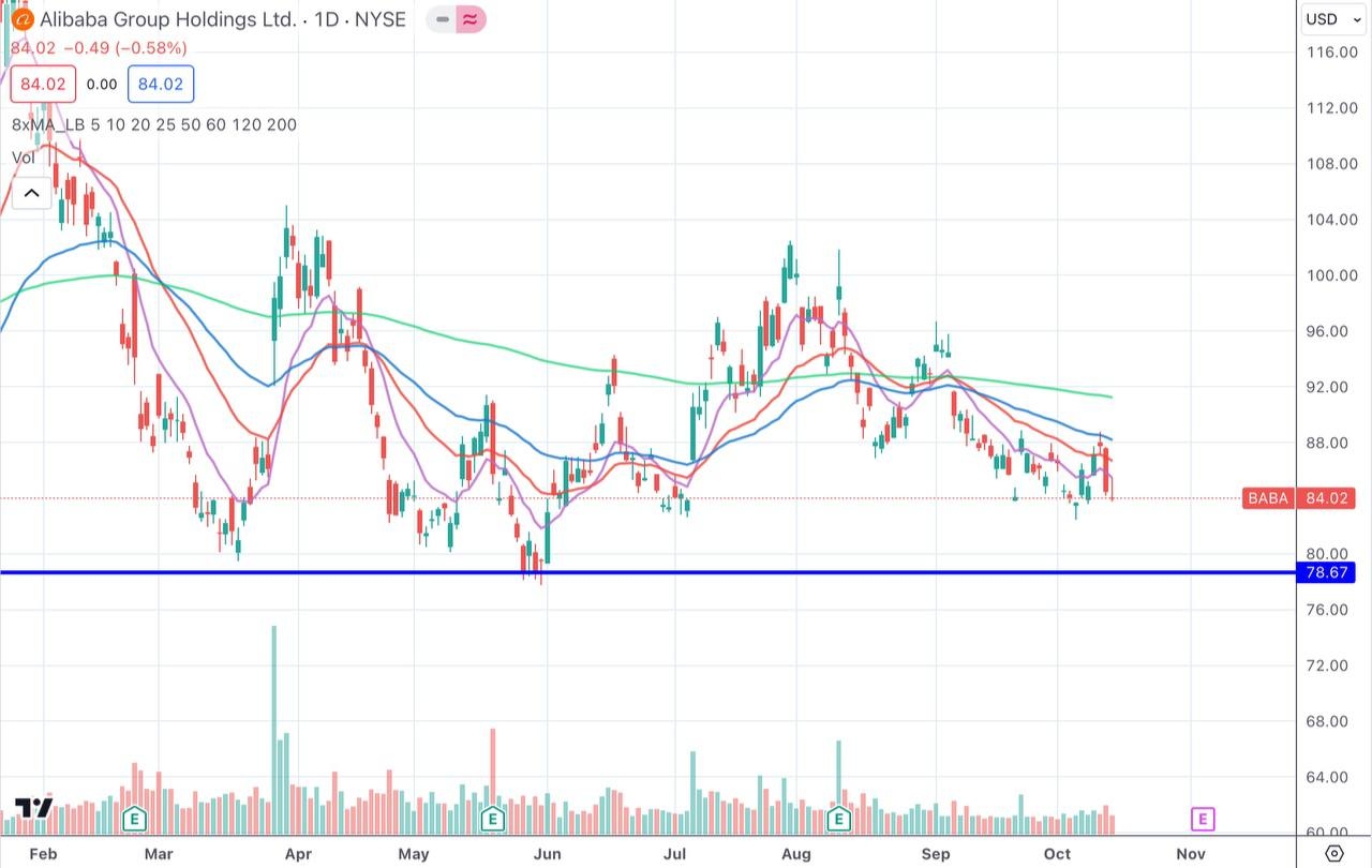 Now, for BABA, one of the most famous counter among the Chinese stocks. Barely see an obvious pattern in the chart honestly. The only close one will be a potential triple bottom formation. Also, Alibaba and Tencent have joined a $300M funding round for Chinese artificial intelligence, or AI, startup Baichuan Intelligent Technology. Baichuan is among the prominent startups developing generative AI models in China, hoping to compete with large language models, or LLMs, from the likes of Microsoft-backed OpenAI, and OTHERS. Let's wait for a rebound from $Alibaba(BABA)$