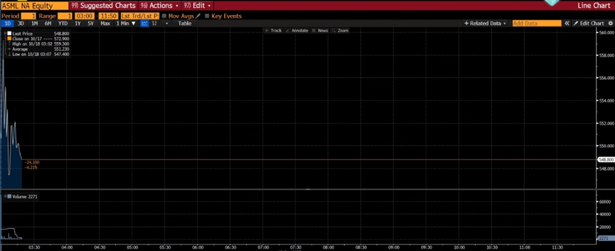 Presently, ASML is experiencing a significant decline in its European stock market price, with a temporary drop exceeding 4%:
