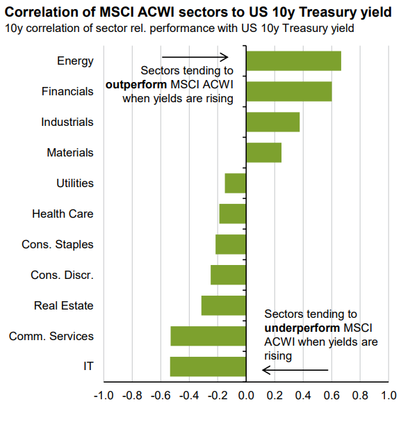 Which sector may perform better when US treasury yields climb up?