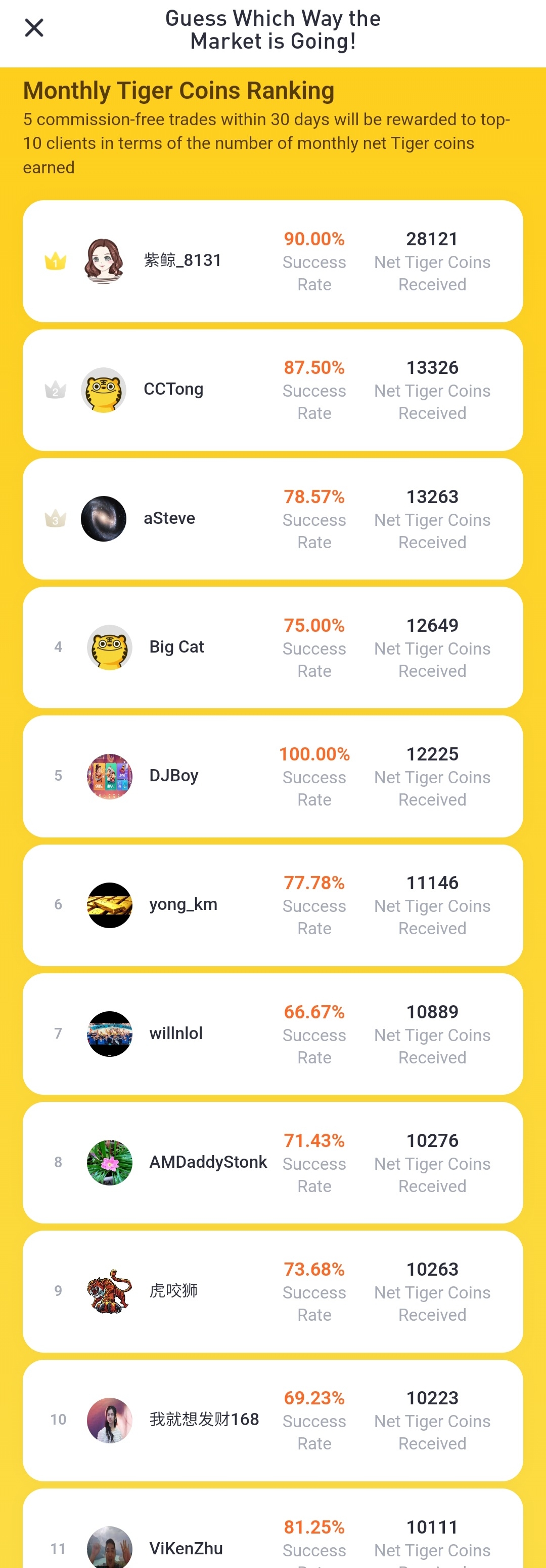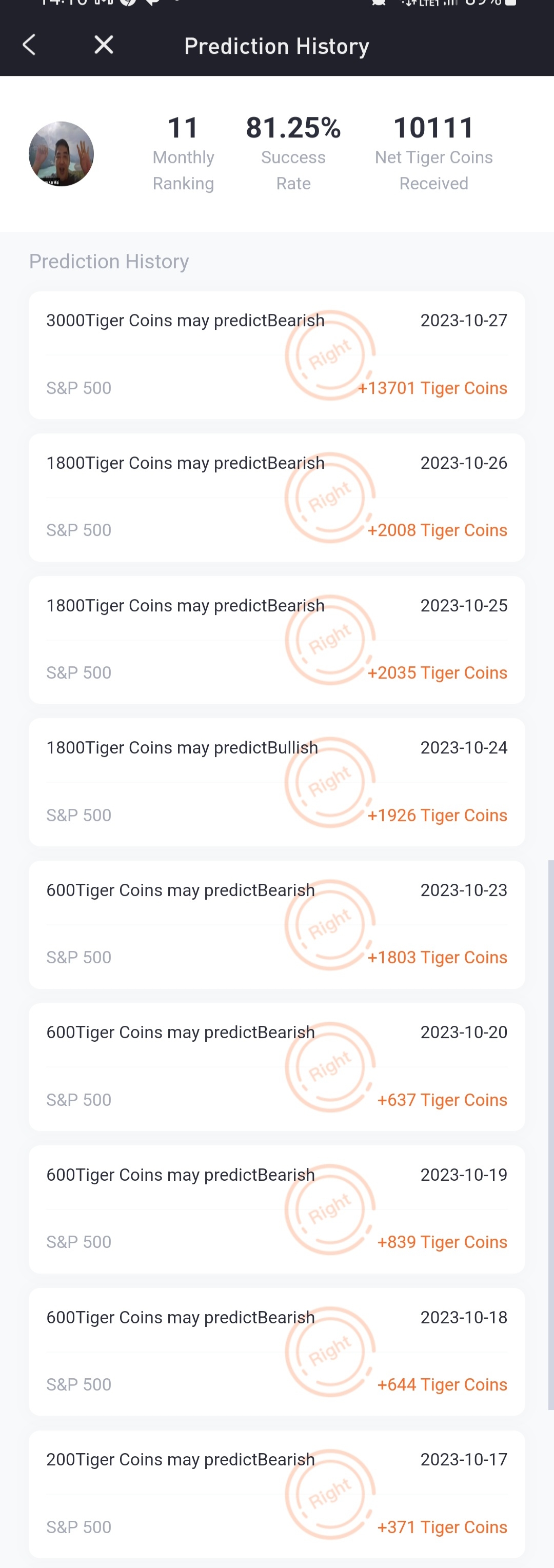 I am happy to share with you guys recently I following a market trend and based on that, my prediction was correct for past 10 days and position myself at placed 11 from previous position 1098.