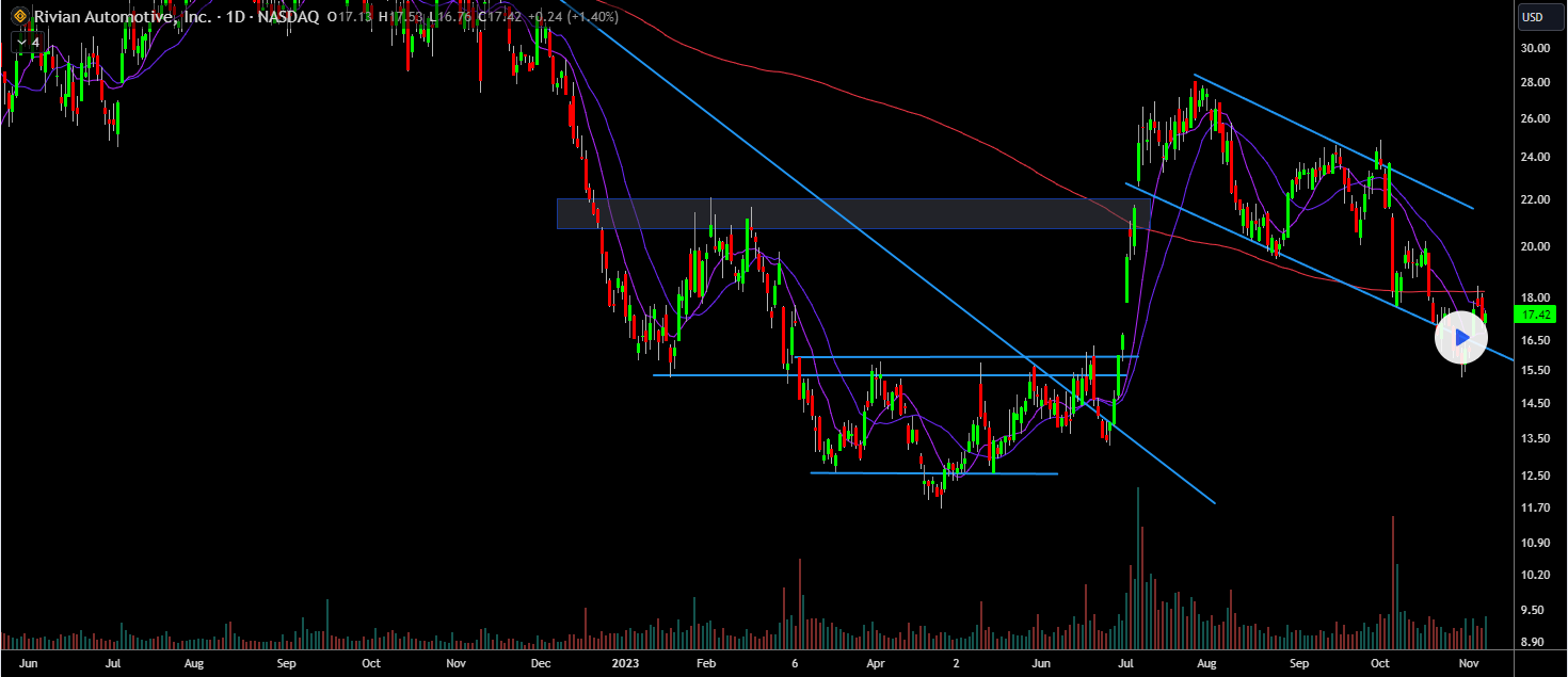 The 200d has finally flatlined, although short term MA's are all pointing down. Some sideways action between 18 & 22 would be great to see the MA's start to curl before ultimately breaking out of this channel and going stage two.