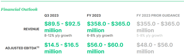 Regarding the guidance, the company expects revenue for Q3 to come in at $89.5 million to $92.5 million, representing year-over-year growth of 8% to 12%. Adjusted EBITDA is expected to be $14.5 million to $16.5 million, representing an adjusted EBITDA margin of 17% at the midpoint.