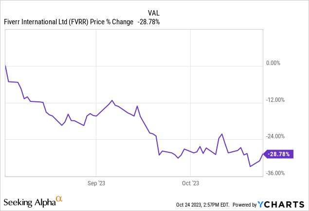 On the 3rd of August, Fiverr International Ltd. (FVRR) released its Q2 earnings before the market opened. The stock was up around 20% as a reaction on that day. Unfortunately, the stock has given back all of its gains since then, and the stock is now down close to 30% since then.