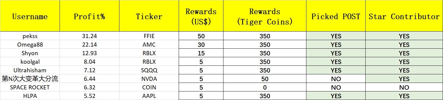 Congratulations to the following Tiger Friends for winning free voucher rewards @pekss @Omega88 @Shyon @koolgal @Ultrahisham @第N次大变革大分流 @SPACE ROCKET @HLPA ! And let's specially congratulate the Tigers who are “Star Contributors”, you will receive an additional reward of 50 Tiger Coins.