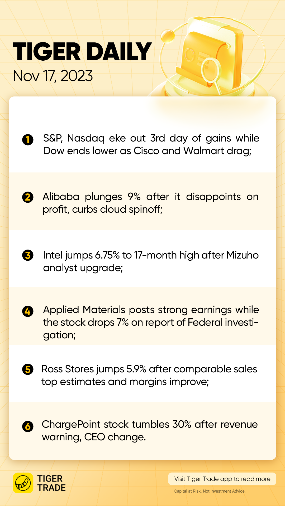 U.S.-listed shares of Alibaba (BABA) fell 9.1% after the Chinese e-commerce and cloud-computing company reported fiscal second-quarter earnings that were better than expected but warned that U.S. export controls on advanced computer chips, expanded in October, โmay materially and adversely affect Cloud Intelligence Groupโs ability to offer products and services and to perform under existing contracts.โ Alibaba revealed it wouldnโt be spinning off the cloud division as planned.