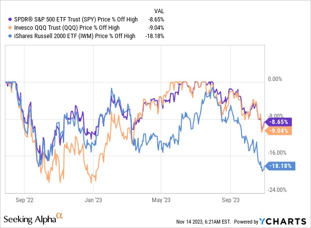Today, we want to take a step back and look at the overall market conditions, especially after the somewhat volatile few months we have had on the market since the end of July. The market found a local top in late July, dropping approximately 10% and entering correction territory. Both the S&P500 (SPY), Nasdaq (QQQ), and especially the Russell 2000 (IWM) suffered through this two-month-long correction period.