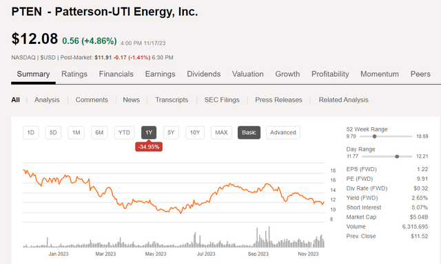 I think PTEN makes a very solid investment case if my expectations for the market in 2024 are realized. The upper range of the analyst expectations for price improvement appear plausible, and I think they are being a little timid with the Overweight rating. I would give them a buy and monitor trading this week to see if any deterioration in the market improves the Patterson-UTI Energy, Inc. pricing at all.
