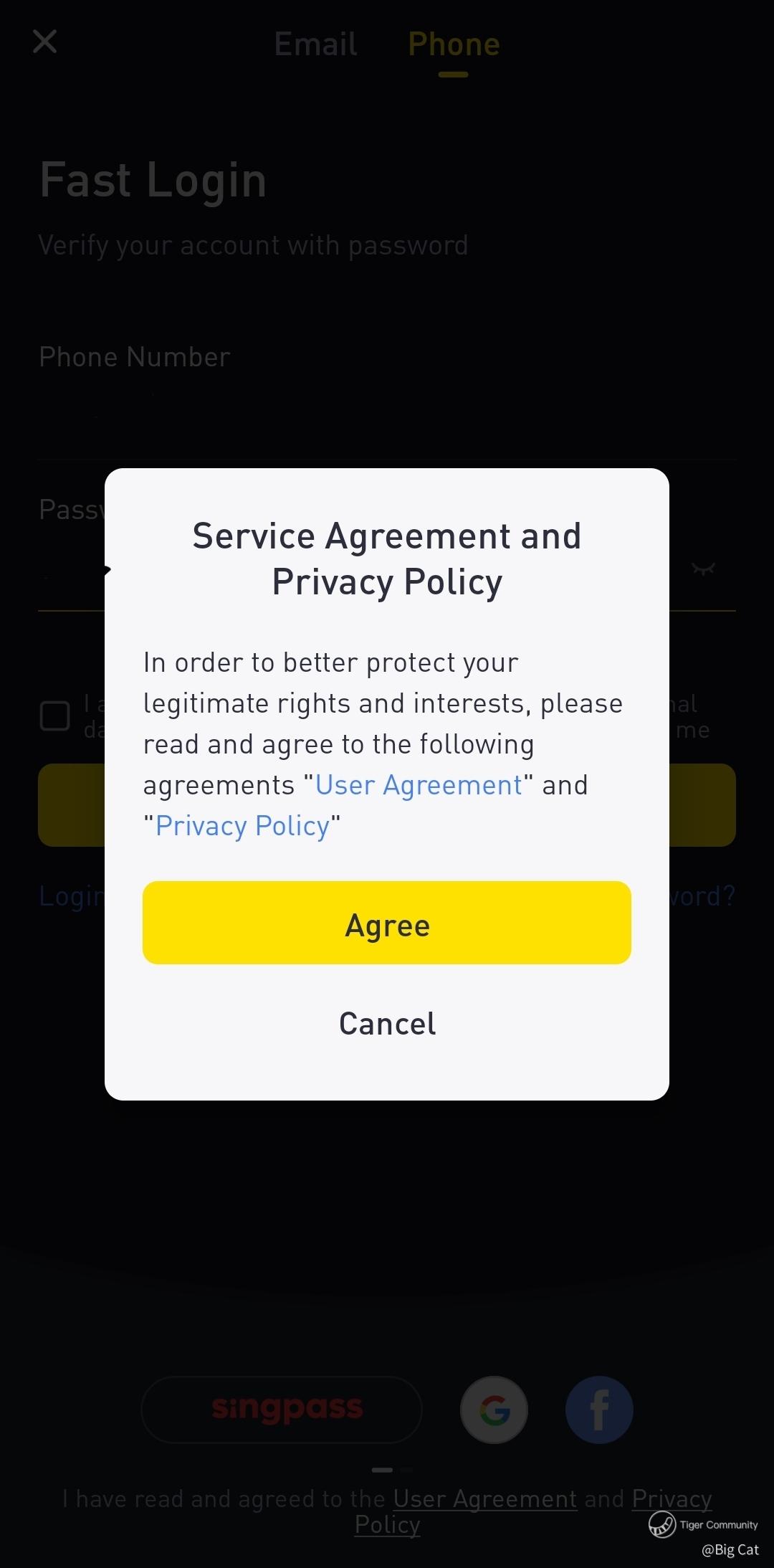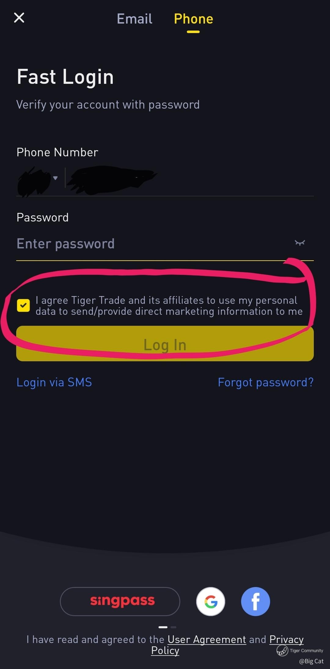 After updating the app, u cannot unchecked this box to log in... u have to agree to log in...