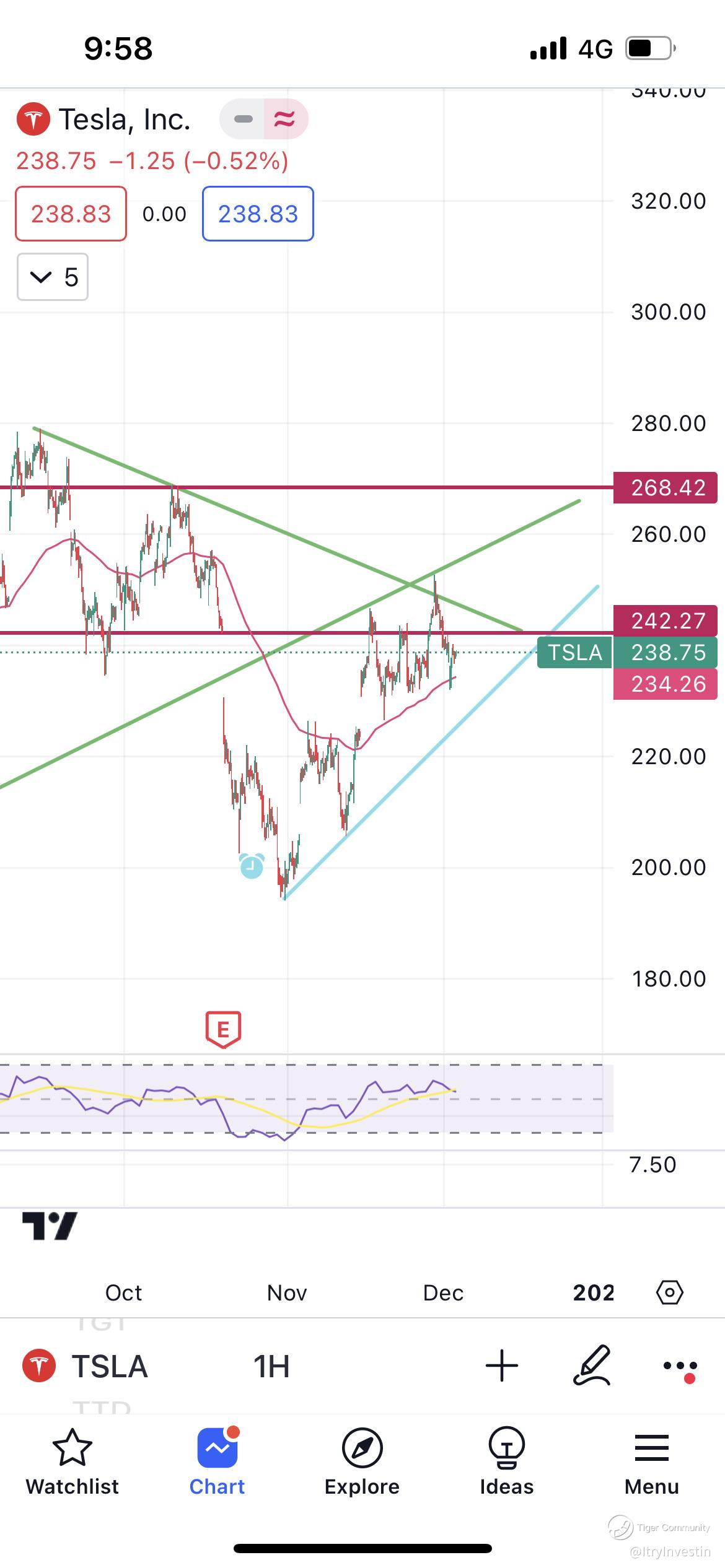 But right now let's dive into TSLA technicals. The release of cybertruck had mixed reactions amongst people causing the stock to be haywired, going up and down the past few days. However, strong support is clearly present when it again bounch off the EMA20 (Around $233-$234) And went up futher for the day. Likely to see Tsla retesting $242 region (another $3-4USD to go) and go sideways from there. Tsla is still making higher highs and higher lows since 1st November and it is unlikely to see tsla going to $200.