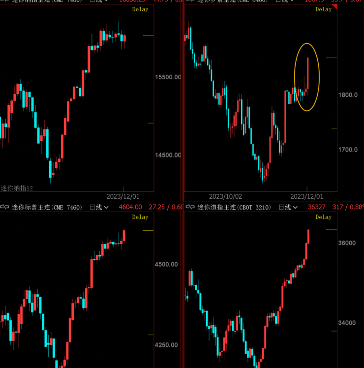 So the indexes that are not very conspicuous at ordinary times will perform. The Dow and Russell 2000 Index, which were relatively weak a while ago last week, performed the strongest, especially the Russell 2000 index of small and medium-sized stocks in the United States, which is still in the range, and the stop loss position will be clearer than other indexes, so we might as well pay more attention to broaden the investment scope.