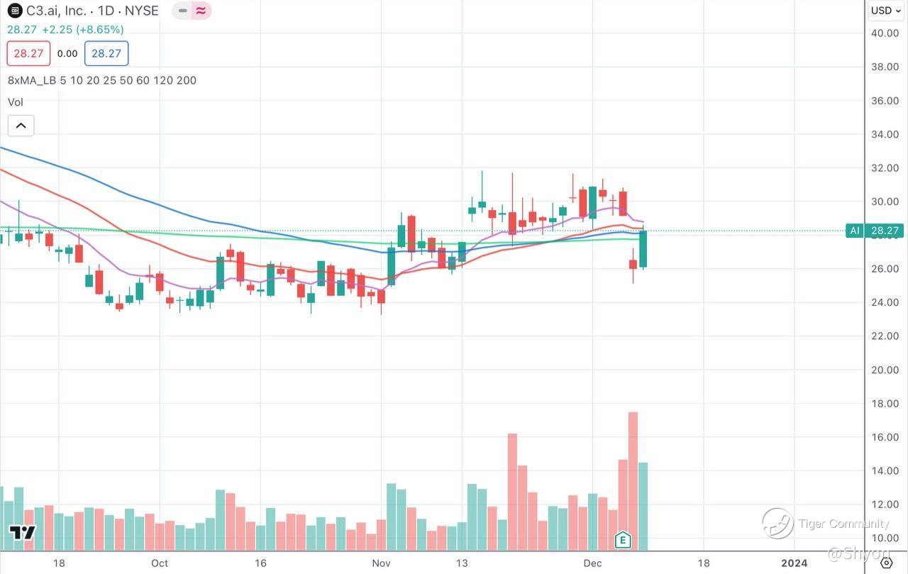 A meme AI stock that disappoints most of its investors. From the recent few earnings results, the company was not doing great and the achievements were well below expectations, that resulted in a poor share price. It's good that the stock manage to form a potential bullish engulfing signal last night, compensating most of the losses after the disappointing results. The stock restands back to EMA 200 trend line and will probably continue its rebound next week. $C3.ai, Inc.(AI)$