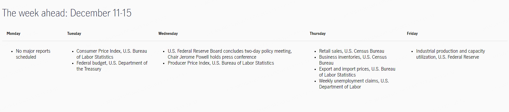 The week ahead : December 11-15