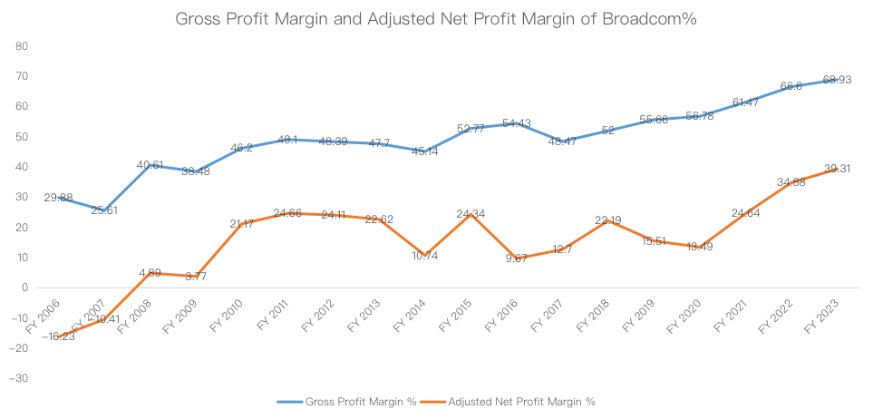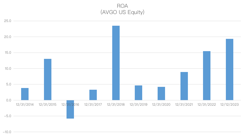 While Broadcom is known for its aggressive acquisition strategy, the post-merger business integration has been notably successful, often achieving a synergistic effect where 1+1 is greater than 2. From the perspective of the total asset return rate, Broadcom's profitability has seen a substantial improvement: