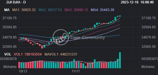 Compared to the uncertainty of U.S. bonds, the current trading of U.S. stocks is more active. Both before and after the FOMC meeting, the three major indices, $S&P 500(.SPX)$ $NASDAQ(.IXIC)$ and $DJIA(.DJI)$ , recorded gains for the sixth consecutive trading day. The Russell 2000 Index ETF (IWM) surged by as much as 2.8%, far exceeding the other three major indices, indicating that investors are very optimistic about the early 2024 economy.