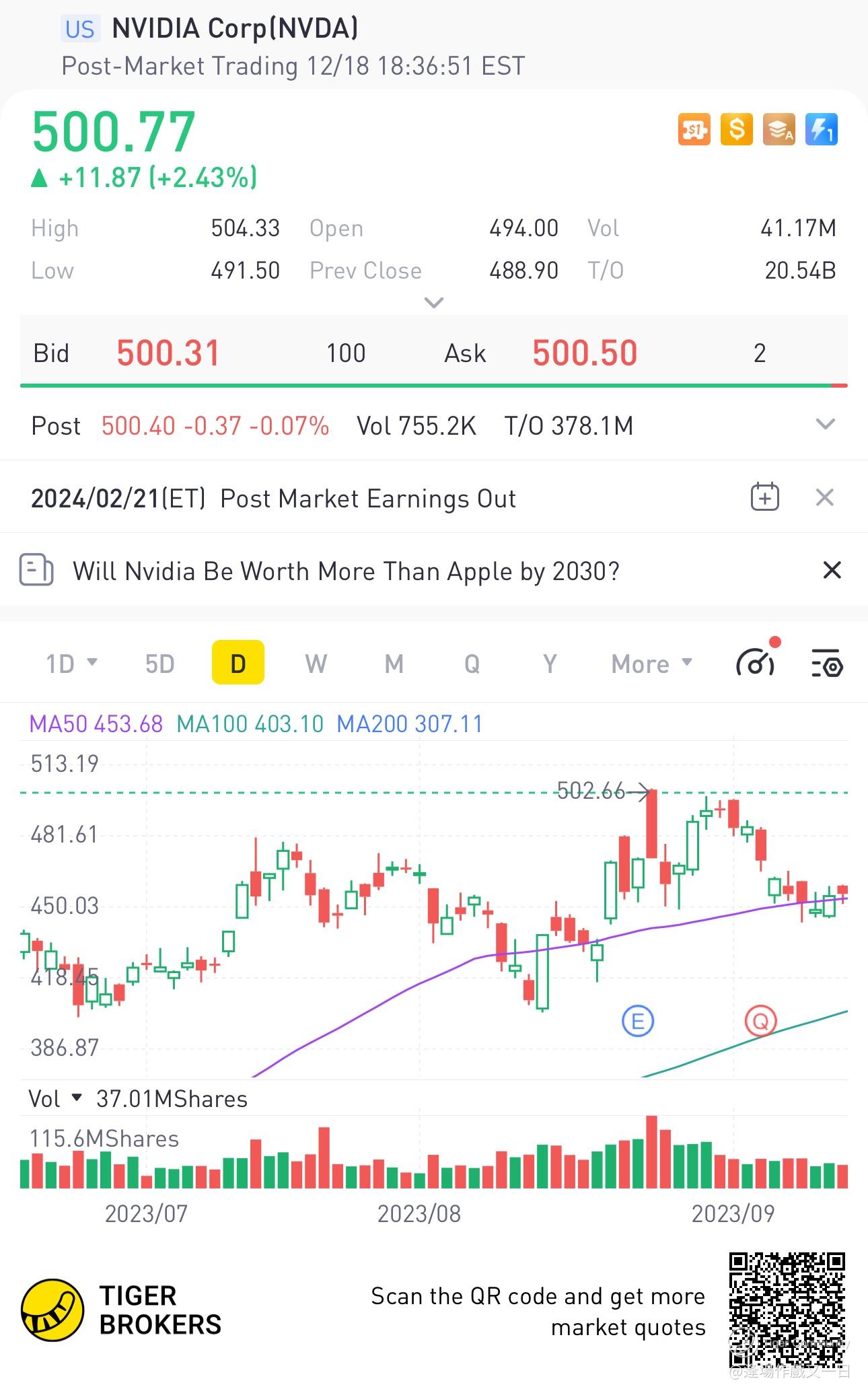 $NVIDIA Corp(NVDA)$ 3rd times reach 500. tell me you are not at the top of the mountain. Gogogo