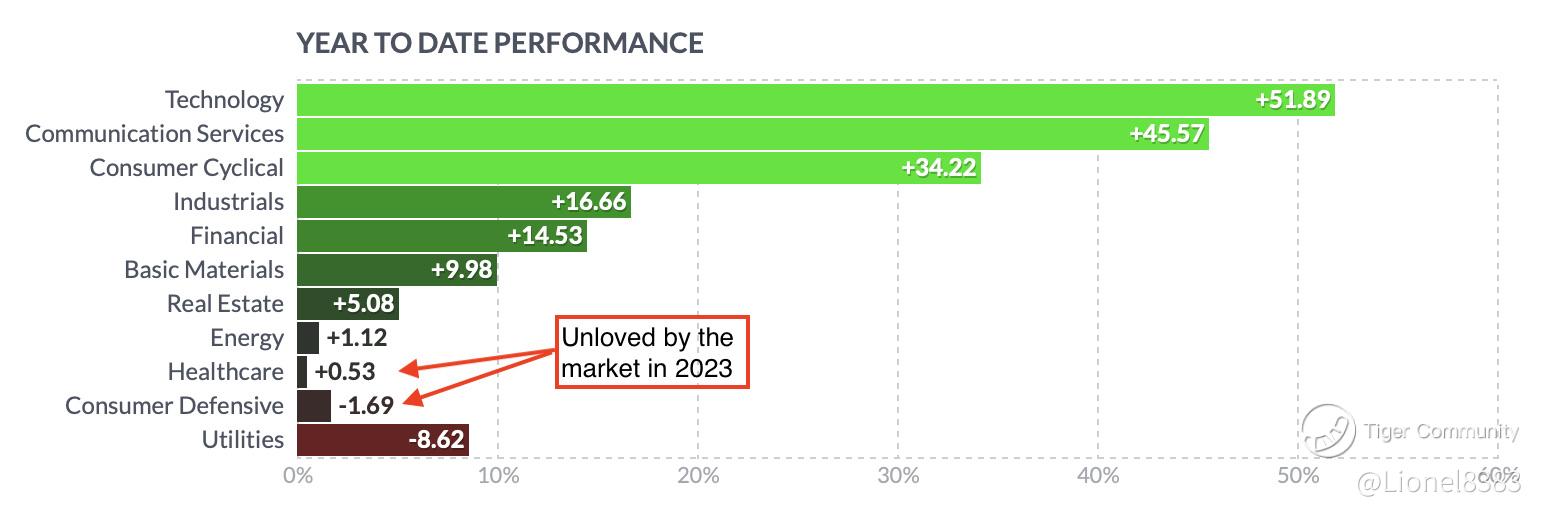 The year-to-date performance so far has seen technology gain by over 51%, followed by communication services (+45.5%) & consumer discretionary (+34.2%). However believe that the opportunities for next year could possibly be in healthcare and consumer staples sectors.