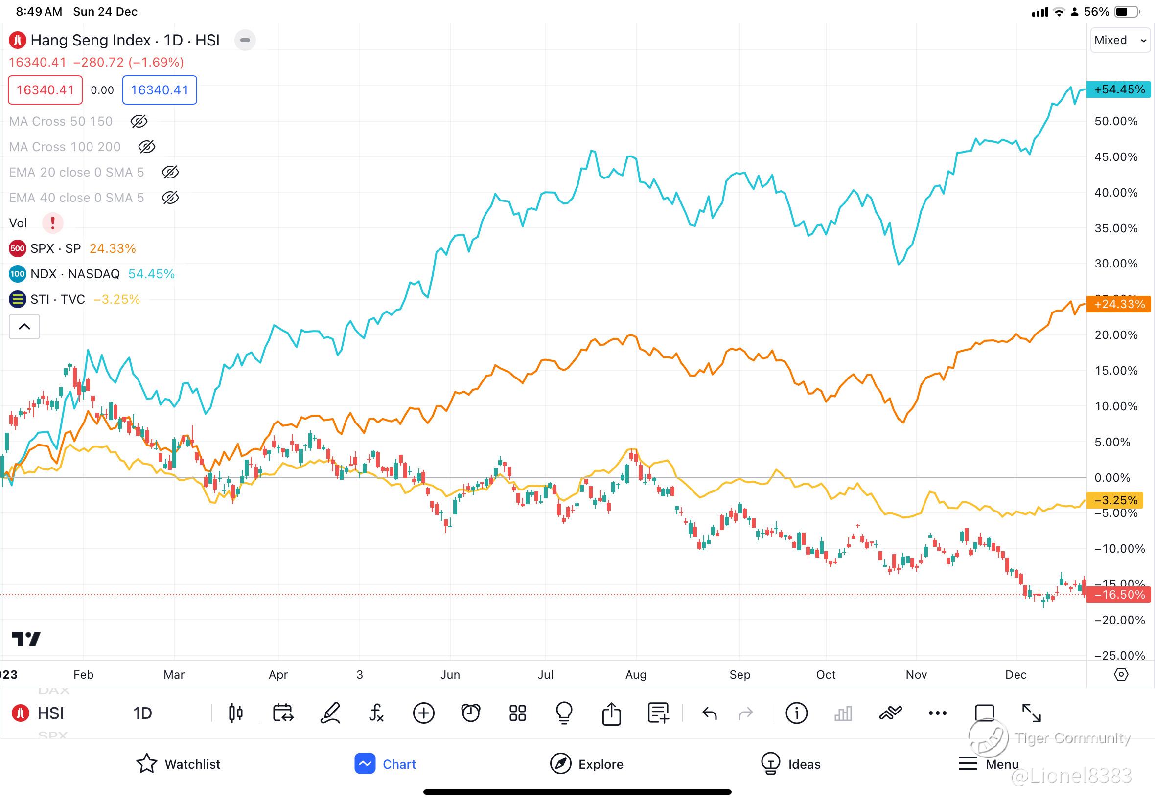 The Hang Seng Index is one of the worst performers this year, when initially it looked like China was on the path to post pandemic recovery, and instead it has now fallen. Even the local Straits Times Index was down only 3.25% in 2023 (year-to-date). The S&P 500 is up almost 24%, while the Nasdaq 100 is up by 54%!