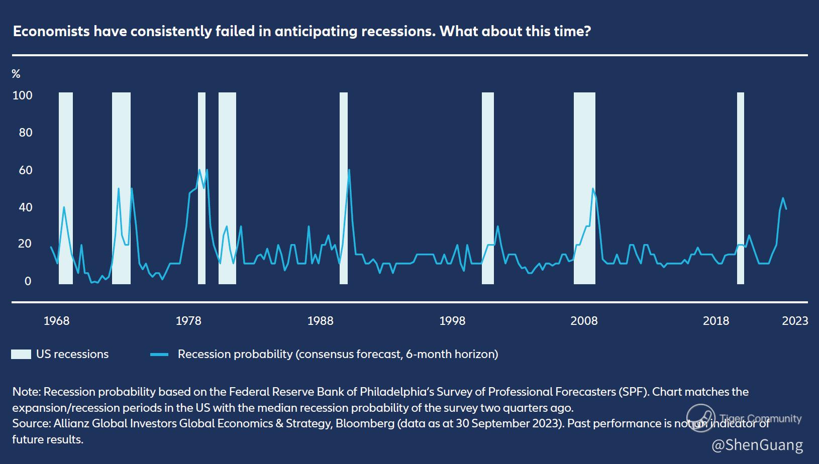 As the U.S. prepares for arguably one of the most contentious elections in modern history, economists and forecasters have been particularly wary of making prognostications, especially after market cool-offs and sector rotations didn't materialize as expected in 2023. Some have substituted the term "recession" with musings on whether a "landing" will be "hard" or "soft". Presently, consensus is inching towards a "soft landing" over the hard. However, Germany's Allianz Global Investors - a subsidiary of the world's largest insurance company - noted in its outlook that forecasters' consensus opinions have been wrong on virtually every recession since the eighties: