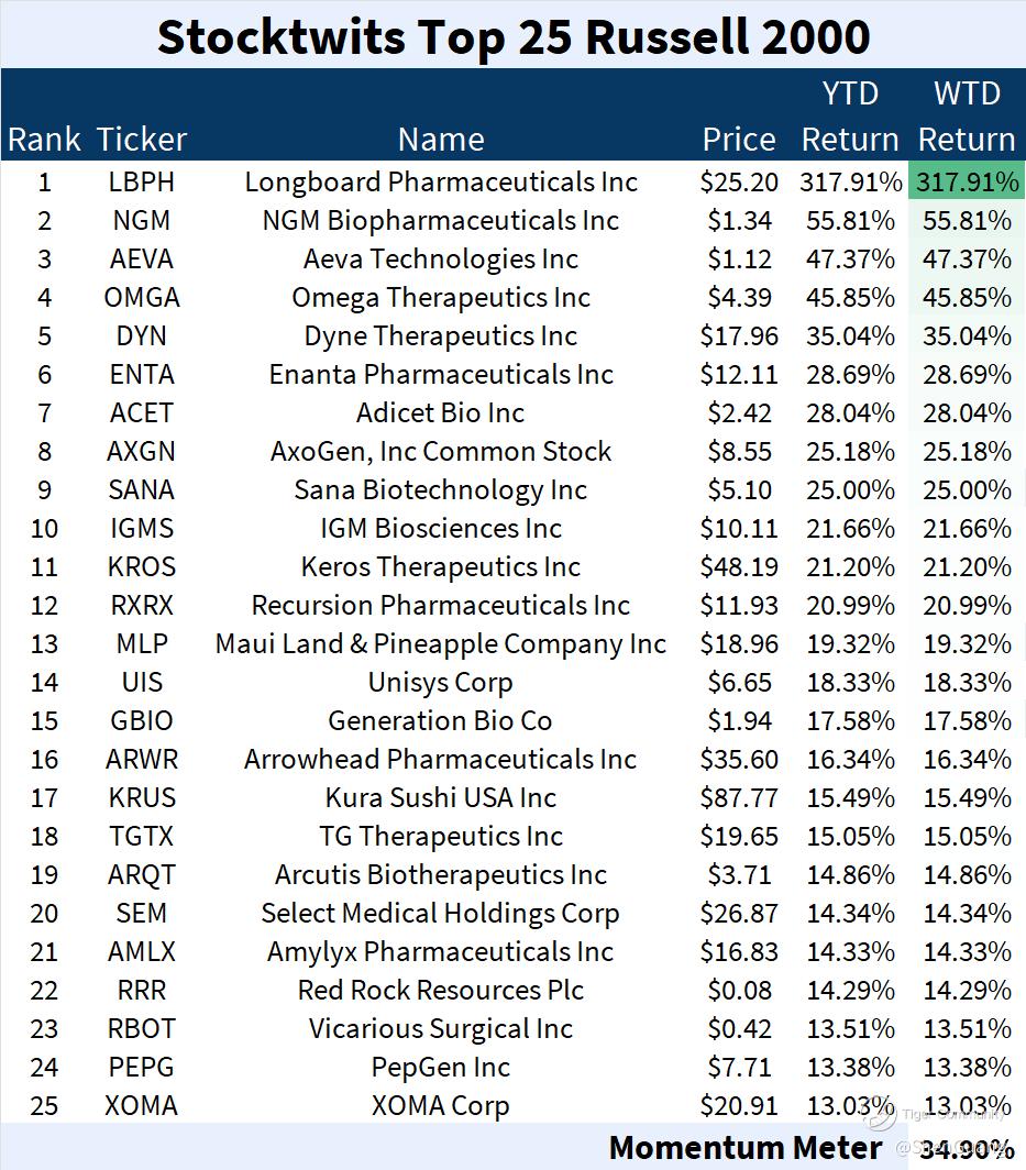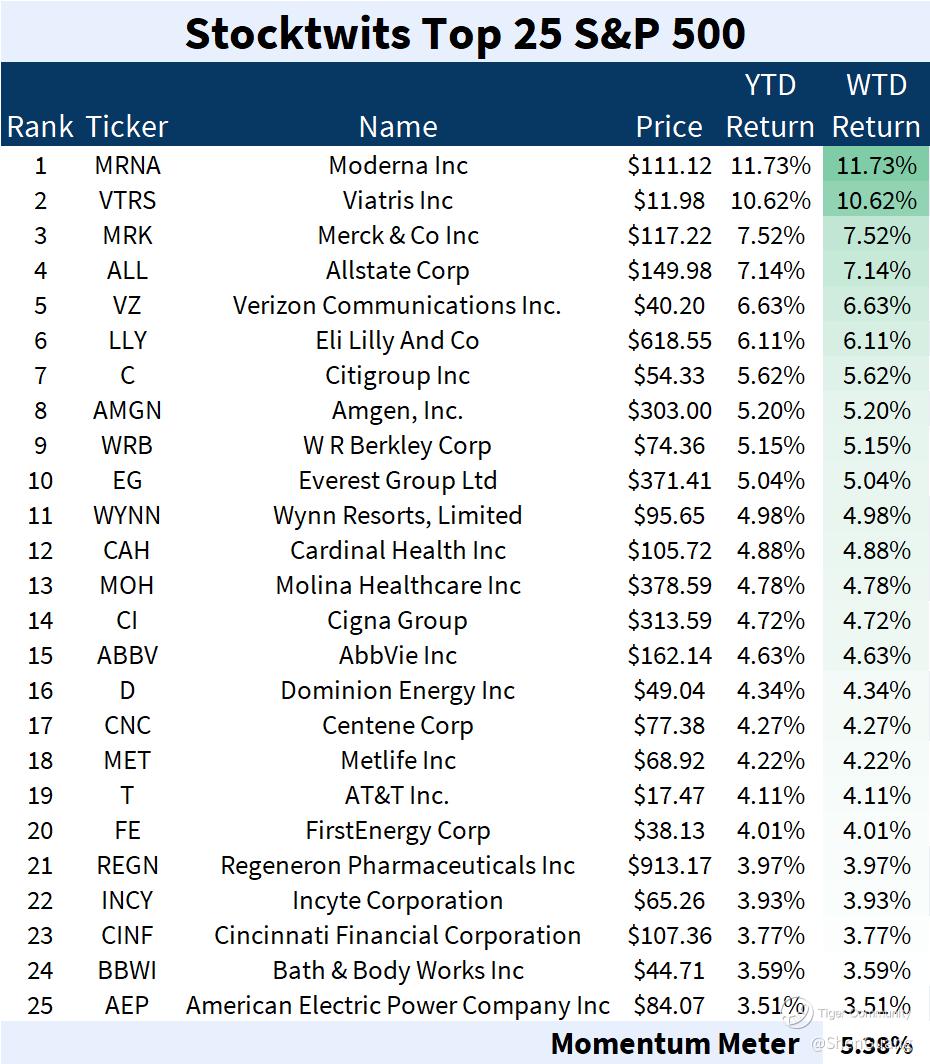 The "broad market" S&P 500 ($S&P 500(.SPX)$ and $SPDR S&P 500 ETF Trust(SPY)$) was relatively muted: its one-day drop in the new year was 0.57% and it dropped another 0.96% in the first week of the year. Pharmaceuticals and financial services ruled the roost in the Top 25 list.