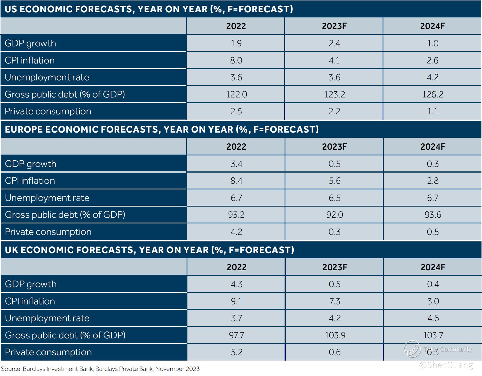 While the Hemisphere is expected to see lower year-on-year Consumer Price Index (CPI) inflation, the United States will see a 17% increase in the unemployment rate along with a 50% decrease in private consumption. No region - be it the U.S., the U.K. or the Continent - will experience GDP growth.
