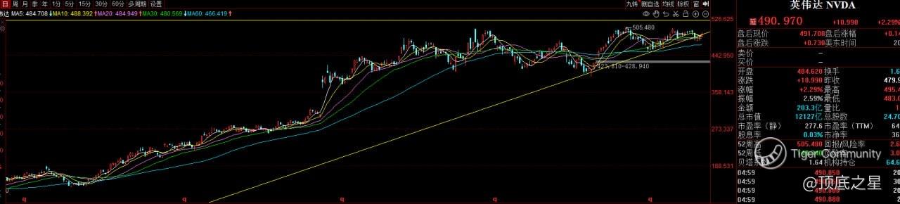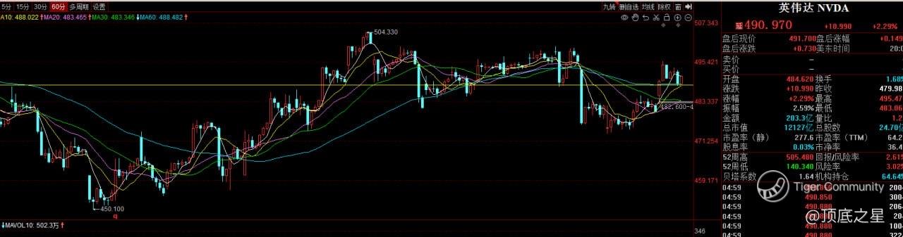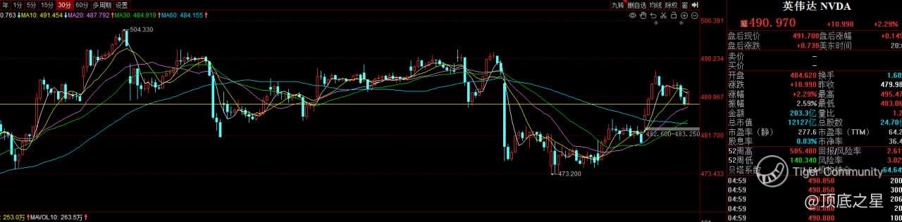 As can be seen from the picture, NVIDIA has stood at the support level of the 15-minute K-line, 30-minute K-line, and 60-minute K-line. It’s not too late to enter the market. The first pressure level above is near $524, and this pressure level is also weak. I believe the probability of a breakthrough is high.