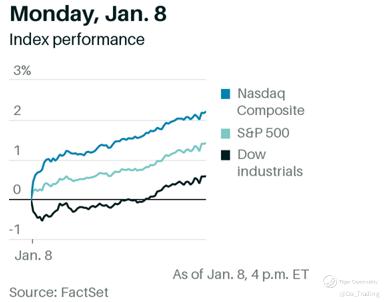 -Positive Start: Monday saw a positive start to the week for U.S. stocks, with the $NASDAQ(.IXIC)$ leading the gains by closing 2.2% higher. The $S&P 500(.SPX)$ rose 1.4%, while the $DJIA(.DJI)$ increased by 0.6%. However, $Boeing(BA)$ 's 8% decline, triggered by the FAA grounding 737 Max 9 planes, limited the Dow's performance.