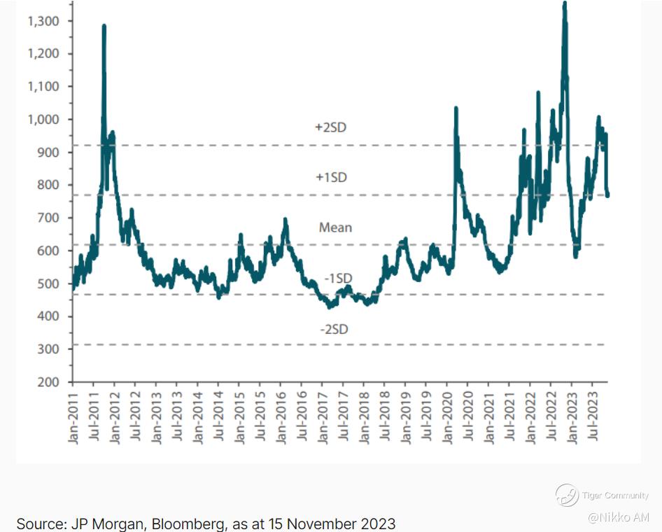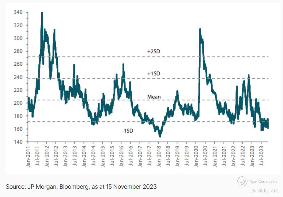 (2) Source: JP Morgan, Bloomberg, Dec 2023