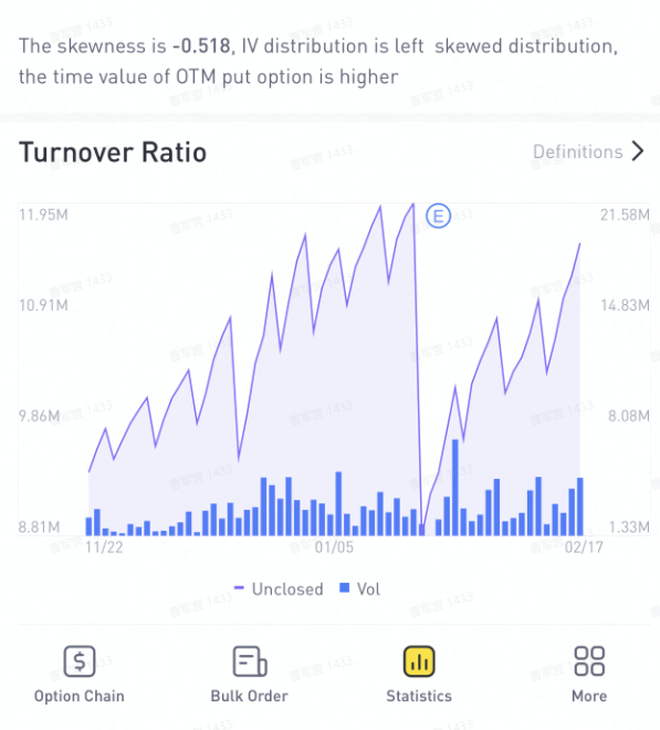 When the turnover ratio rises but unclosed contracts stay the same or even drop, it shows options being actively bought and sold with high turnover. This means both bulls and bears are actively competing, making the future trend uncertain. In this case, it's best to be careful and keep watching.