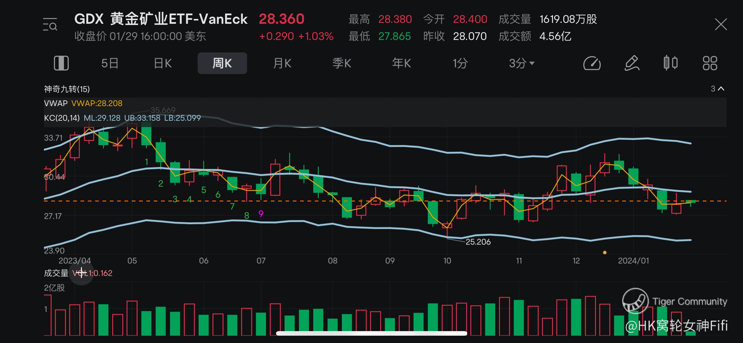 $黃金礦業ETF(Market Vectors)(GDX)$ 是一種交易所交易基金(ETF),其目標是跟蹤黃金礦業公司的表現。
