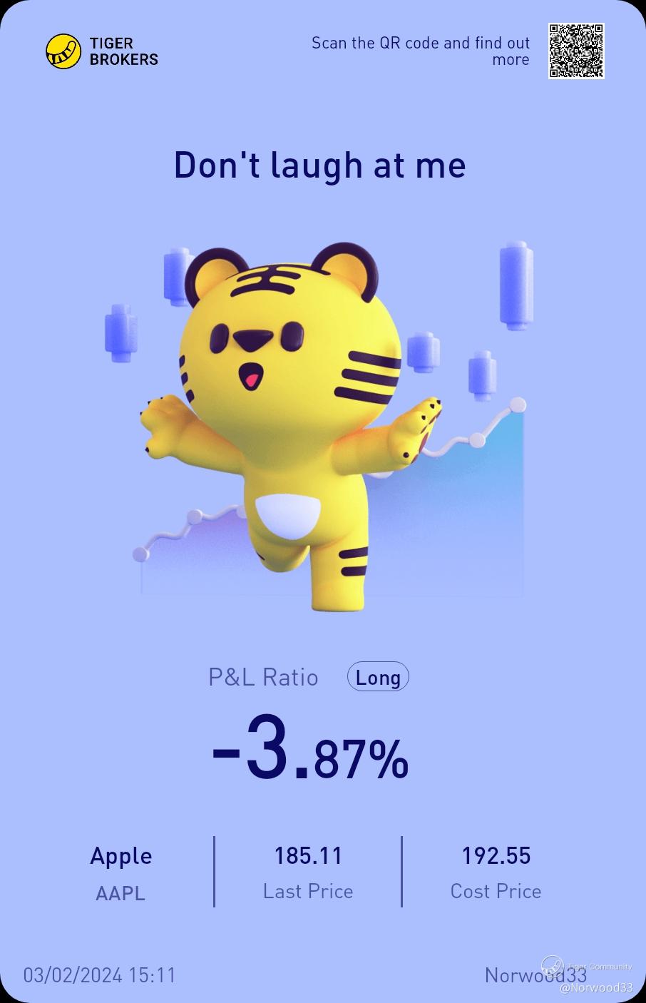 $Apple(AAPL)$ dam apple but still hopeful long term.