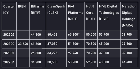 This projection is then benchmarked against the major Bitcoin miners to determine their sustainability and profitability. Here's what was observed: