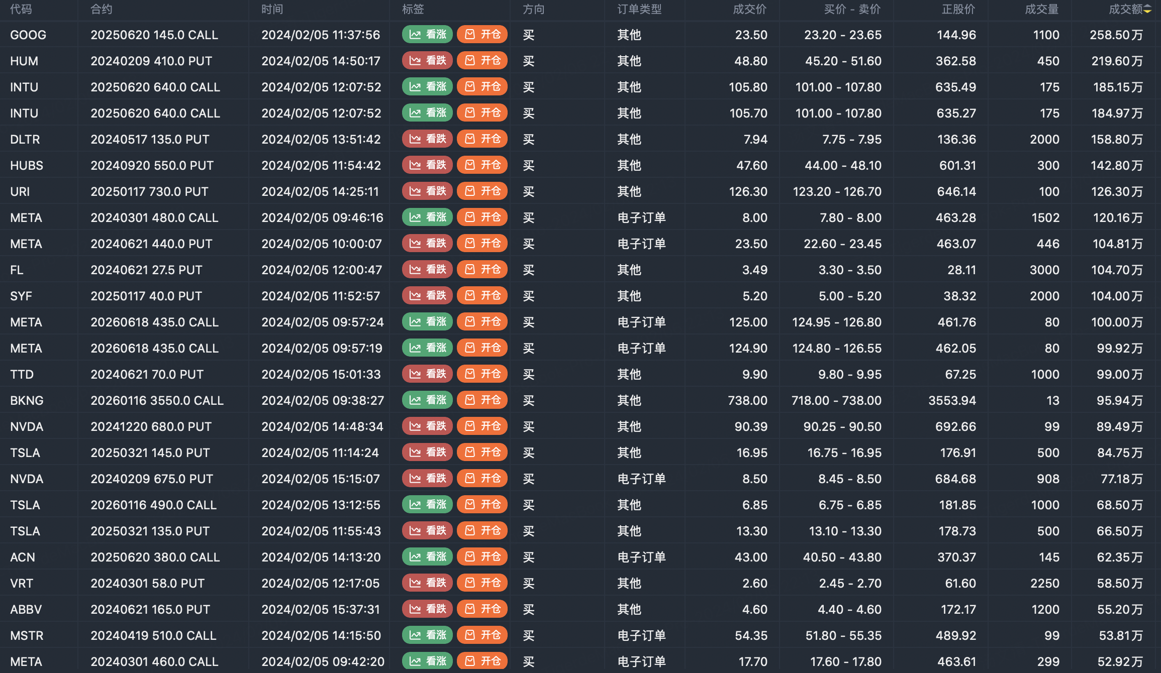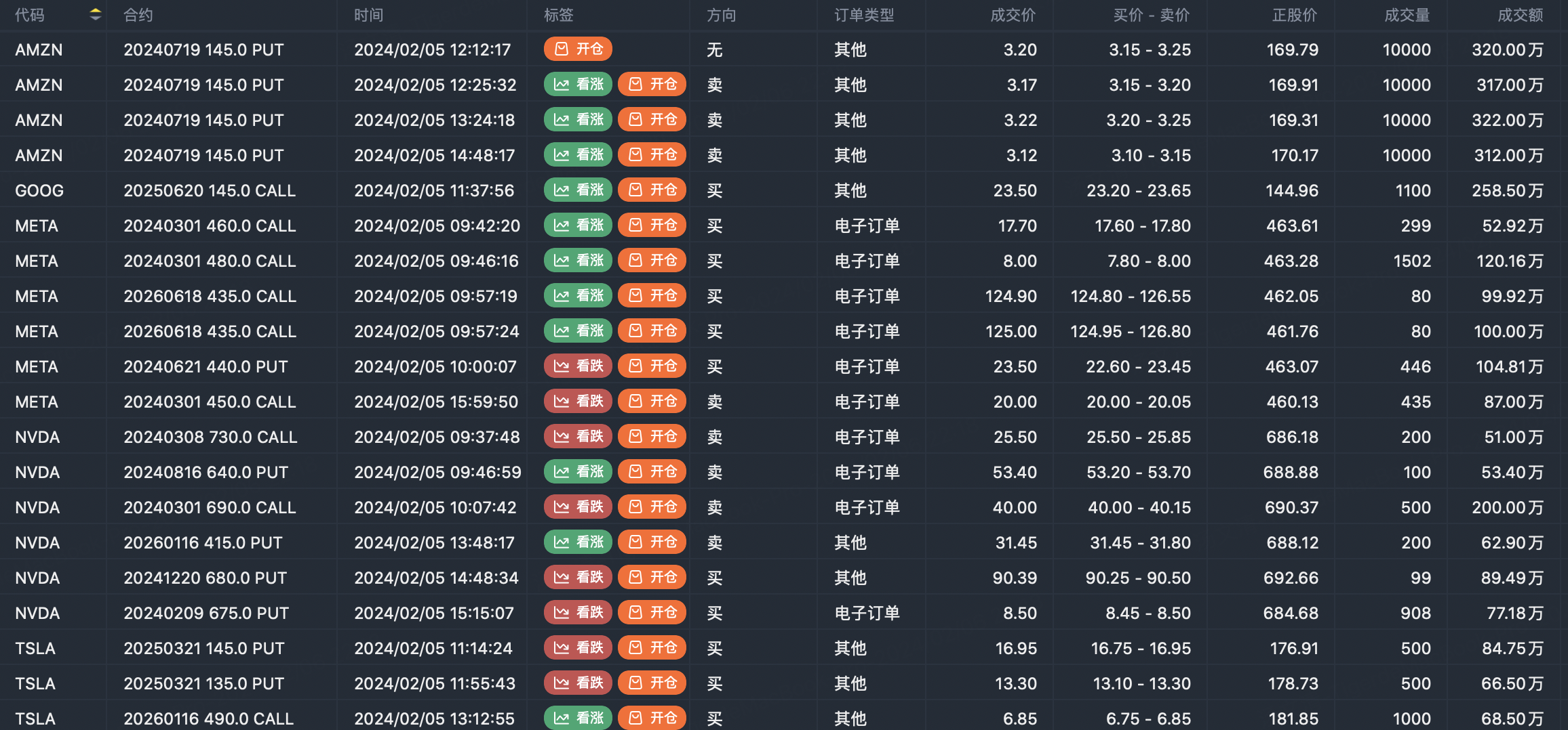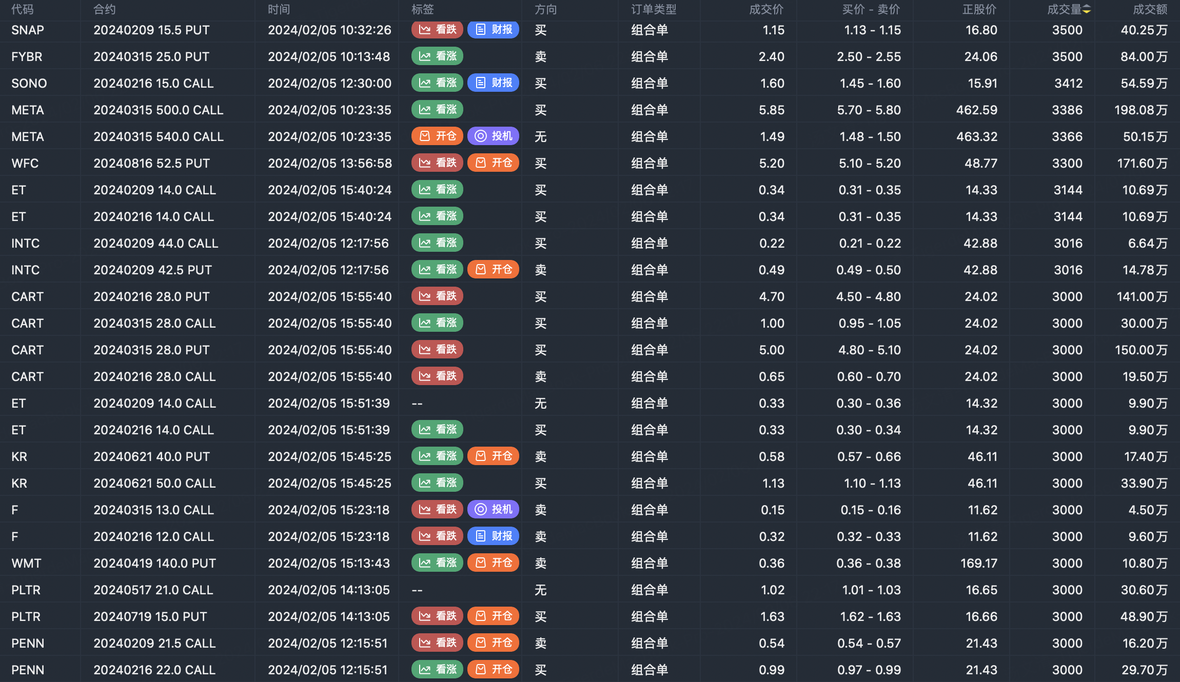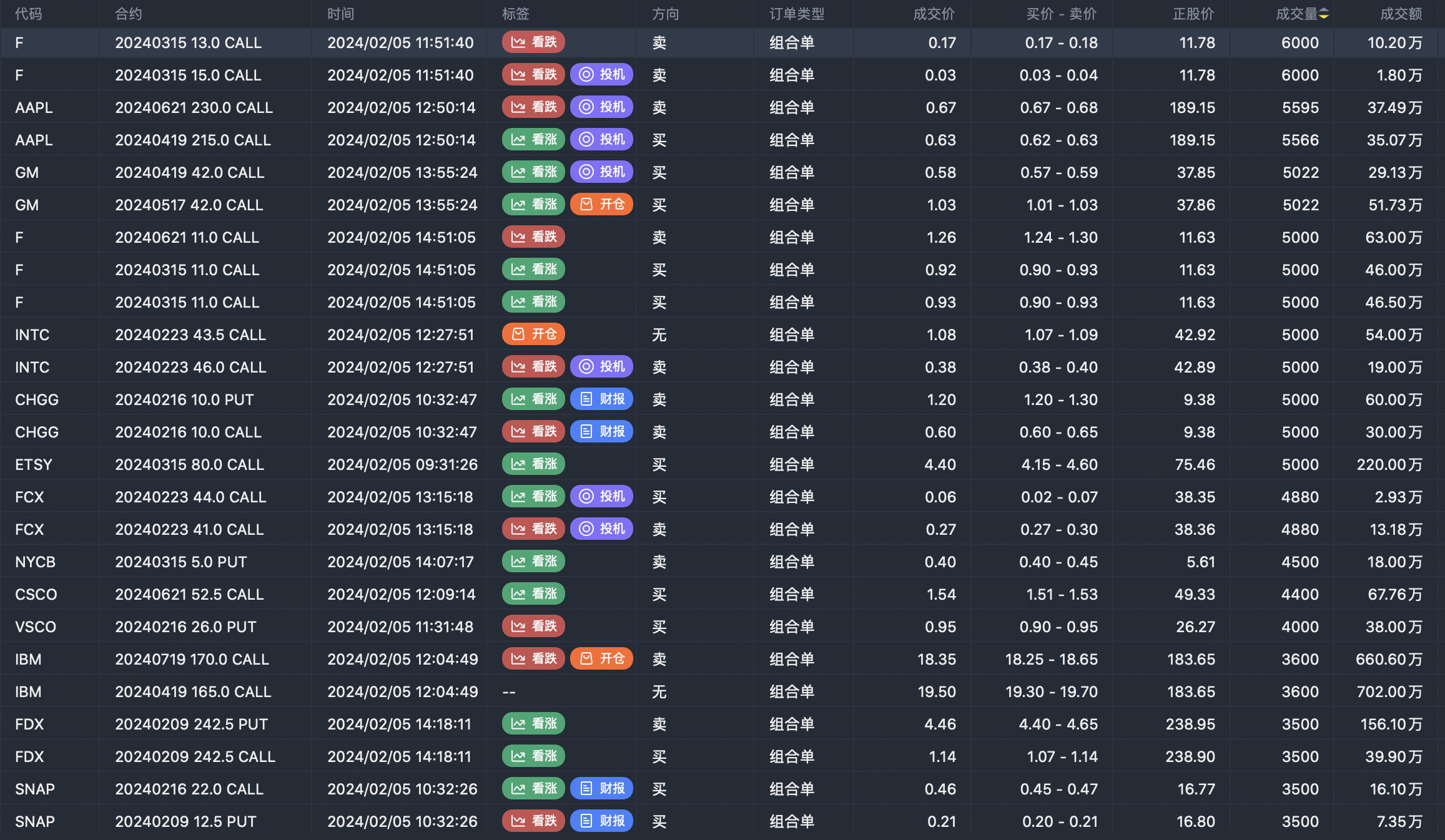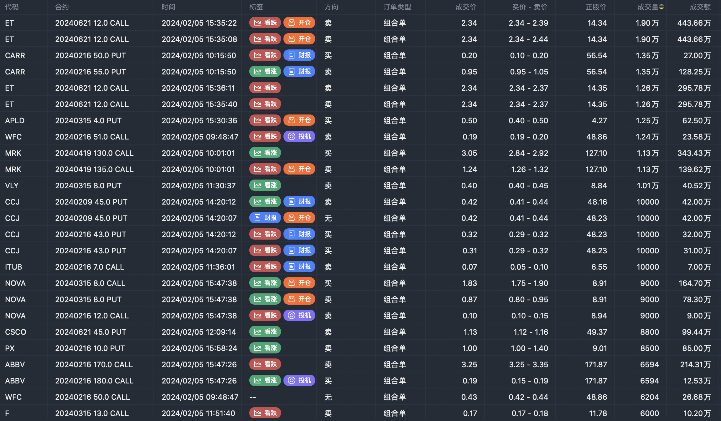 Note: This image data is from Tiger PC. This screening is a significant portfolio of options contracts in the market. Portfolio opening includes a variety of underlying trends, requiring traders to further master the basic knowledge of options for analysis and judgment.