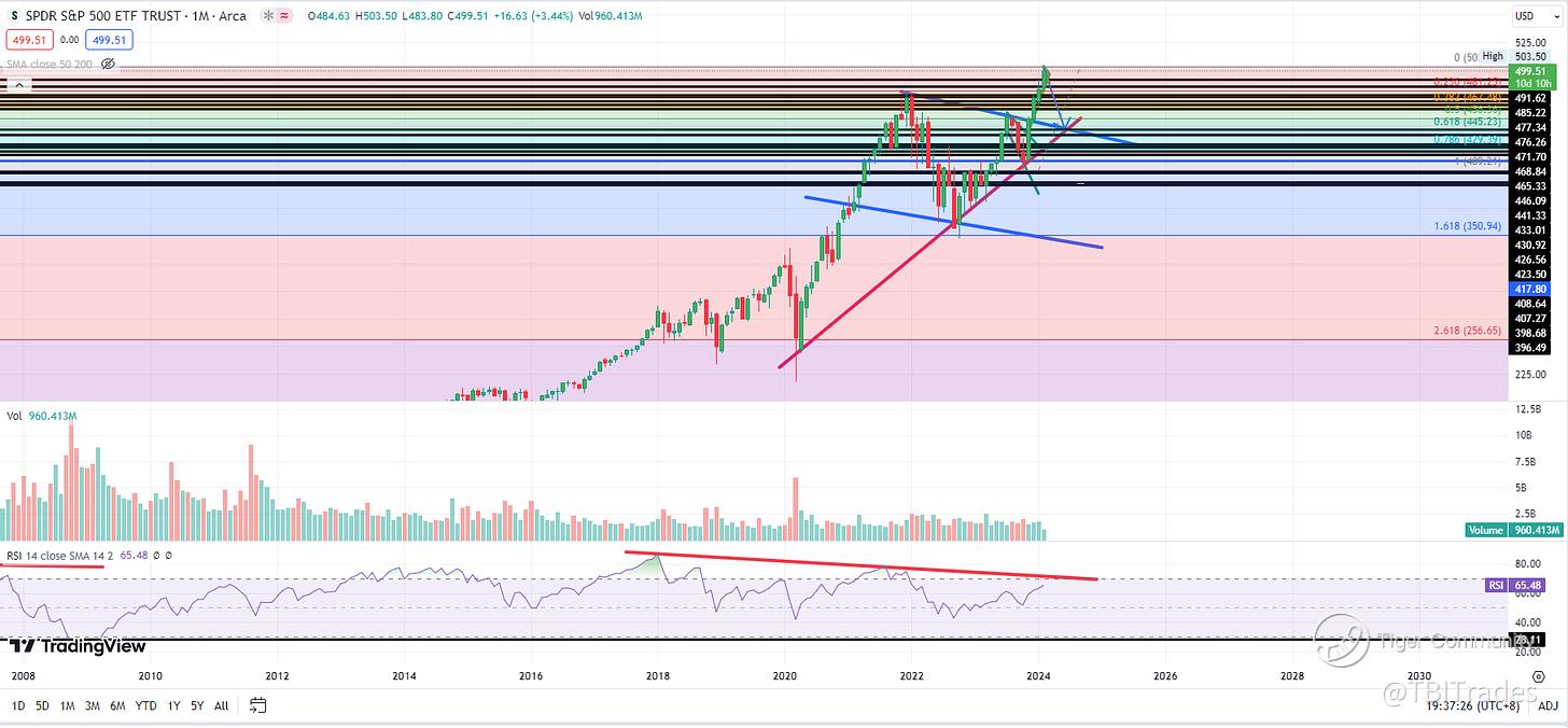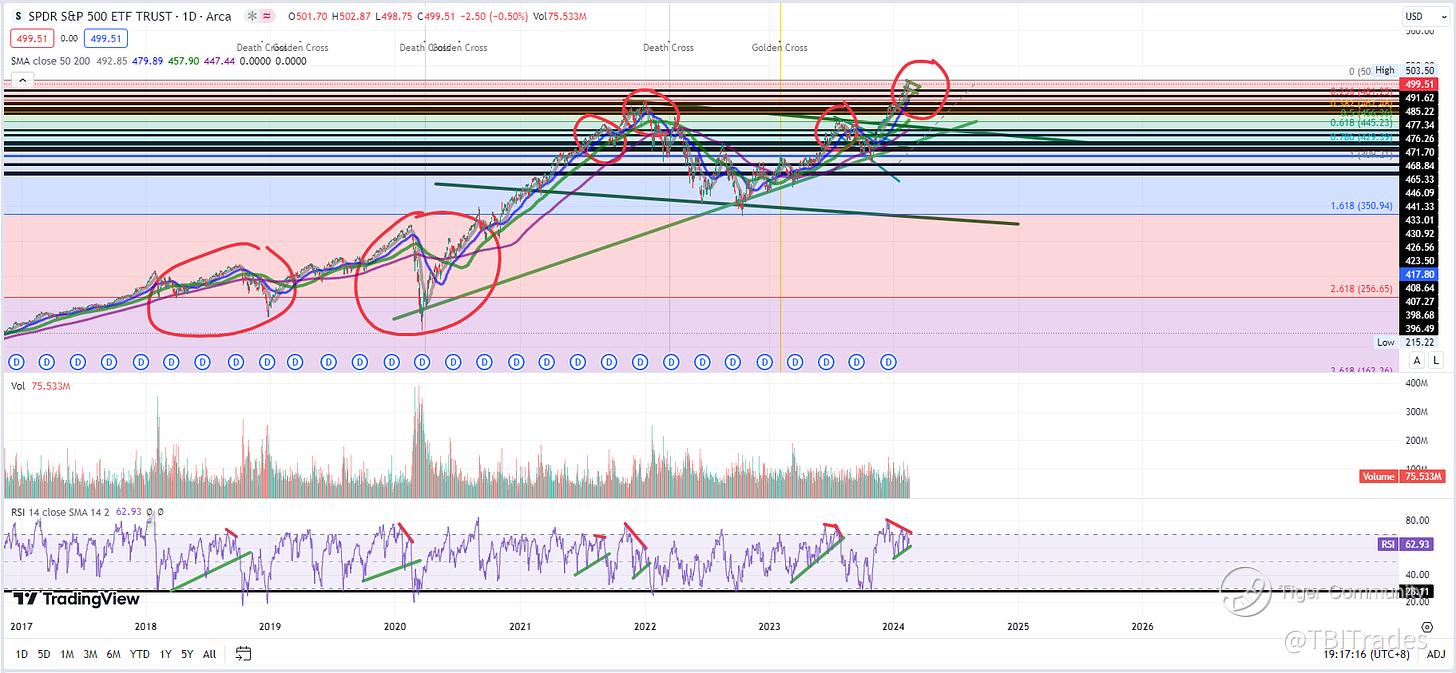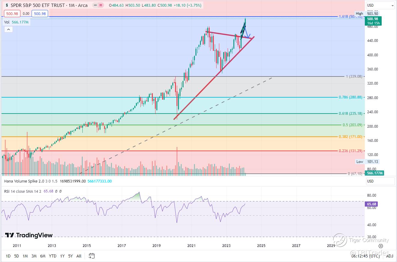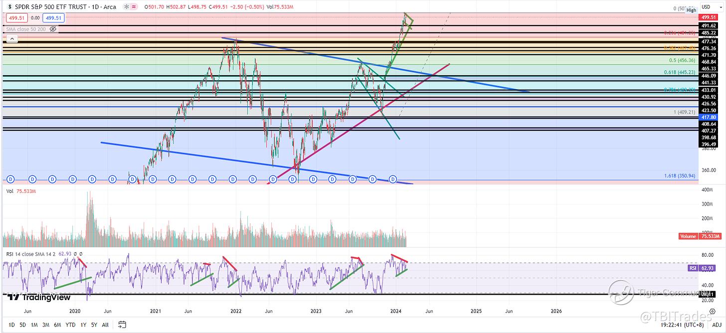The other is around 522, and is the 1.618 Fib extension at around 522, based on the SPY inception price at 42 to the pre-COVID high at 339.