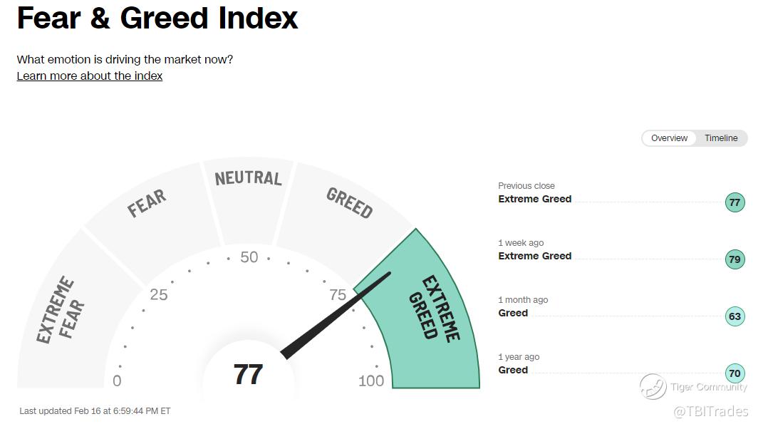 Seasonally weak period for broad-based indices is between mid-Feb and mid-March, and sentiment is at Extreme Greed. Going long right now warrants significant caution.