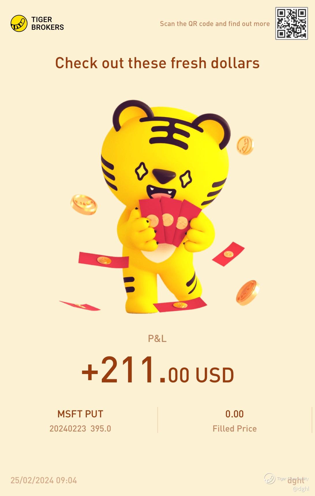 $MSFT 20240223 395.0 PUT$ got pretty close to strike price during the week but luckily recovered. Might have to roll over to next week if ITM.