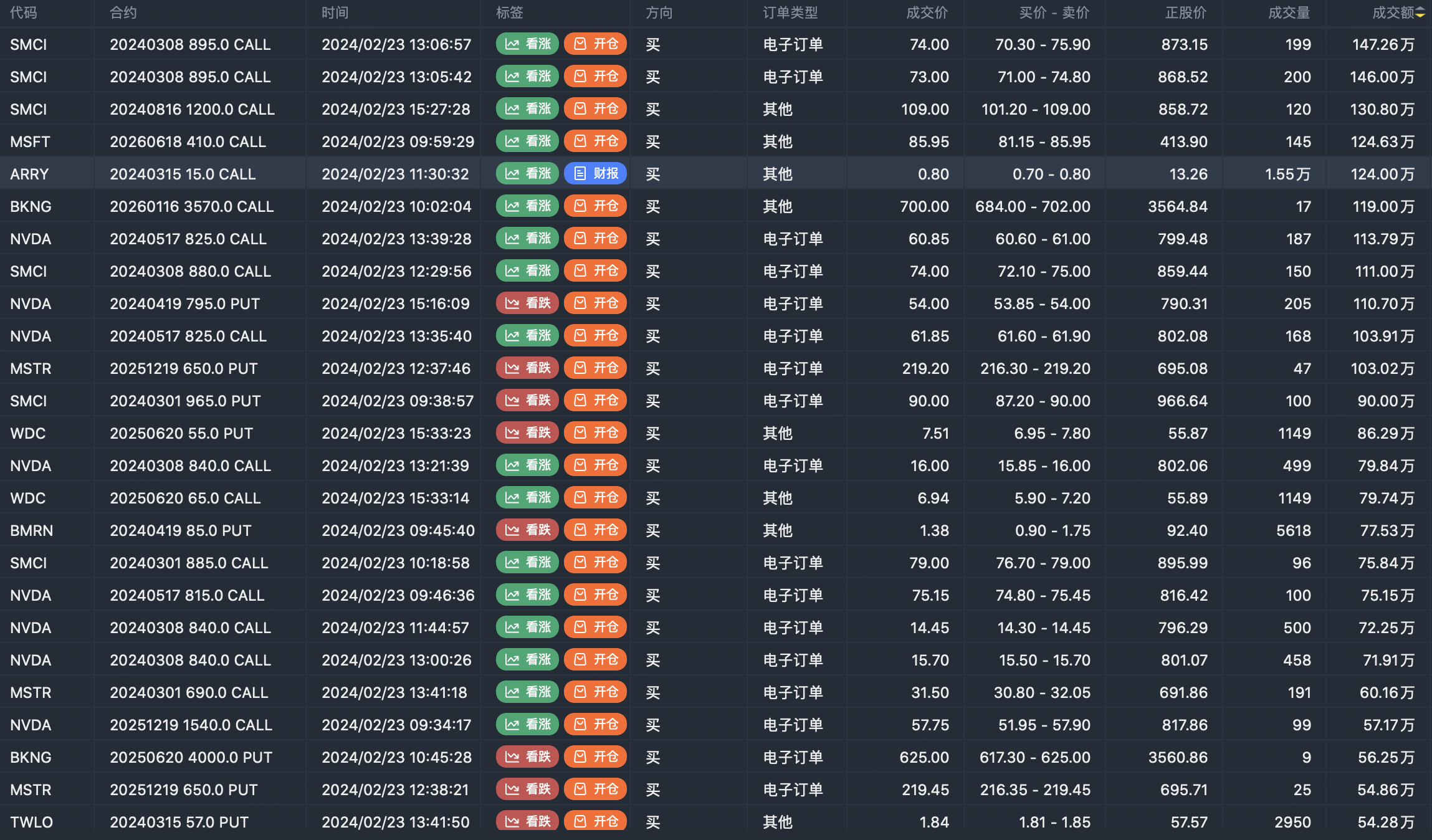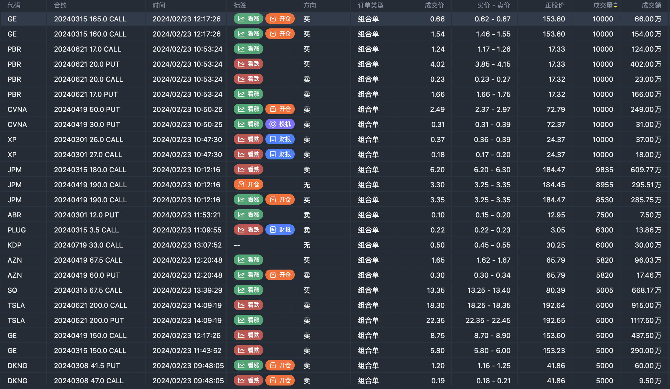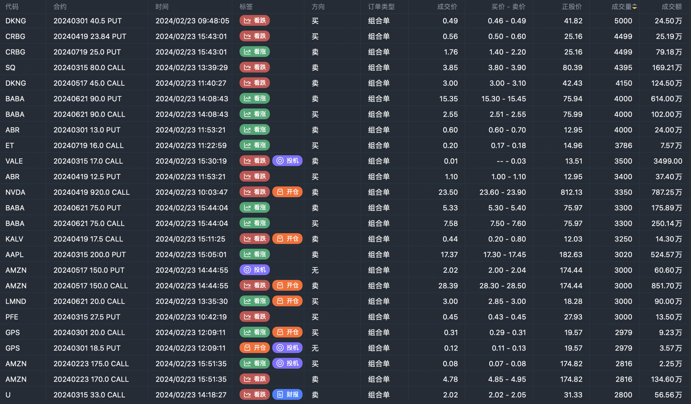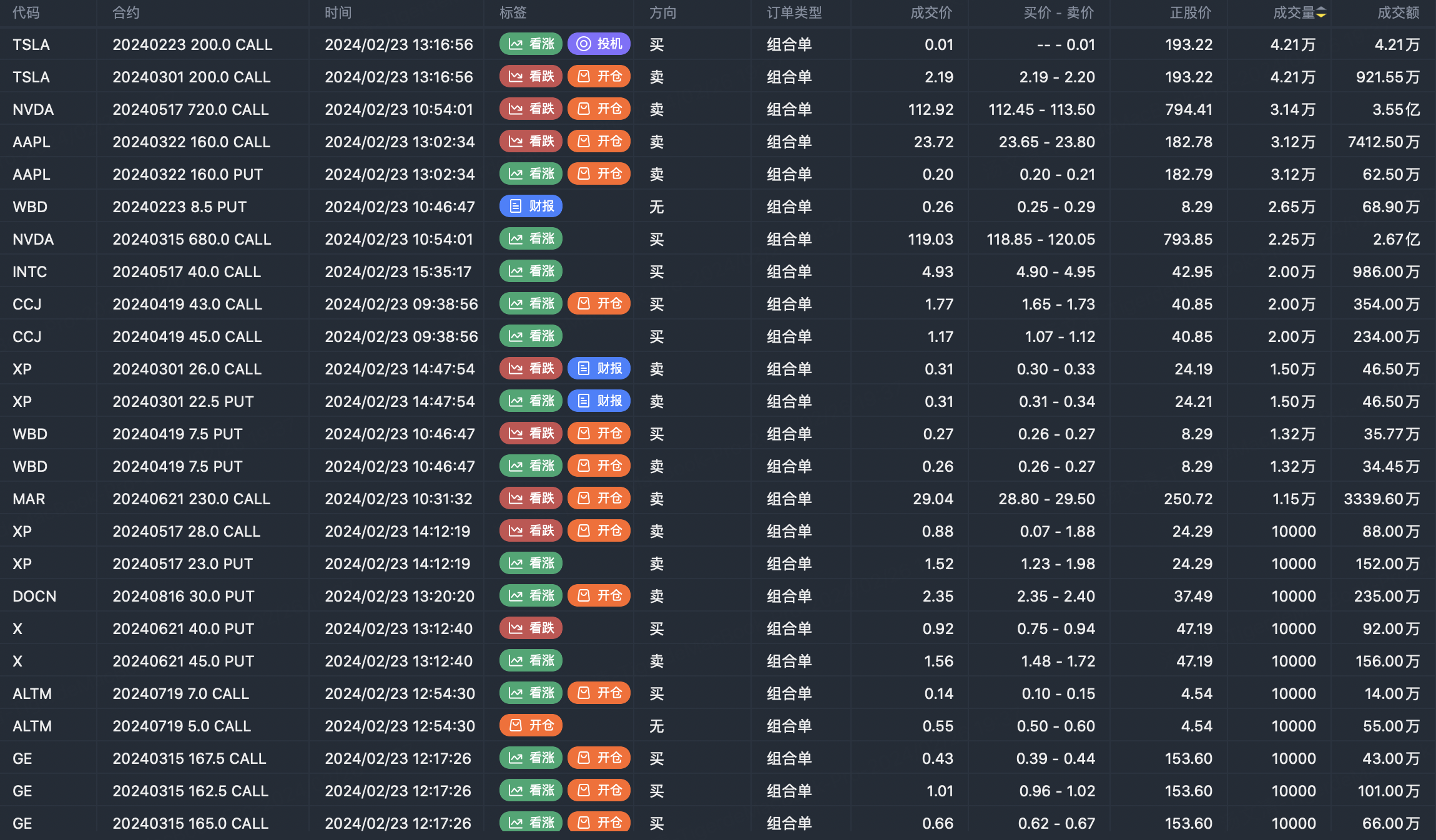 Note: This image data is from Tiger PC. This screening is a significant portfolio of options contracts in the market. Portfolio opening includes a variety of underlying trends, requiring traders to further master the basic knowledge of options for analysis and judgment.