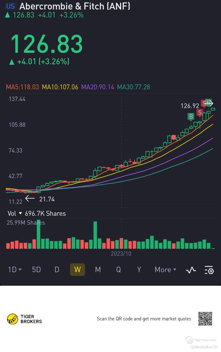 $Abercrombie & Fitch(ANF)$ Consistent performer for long, super mega market cap, heading towards earnings next week, constant beats past earnings, the choice is obvious.