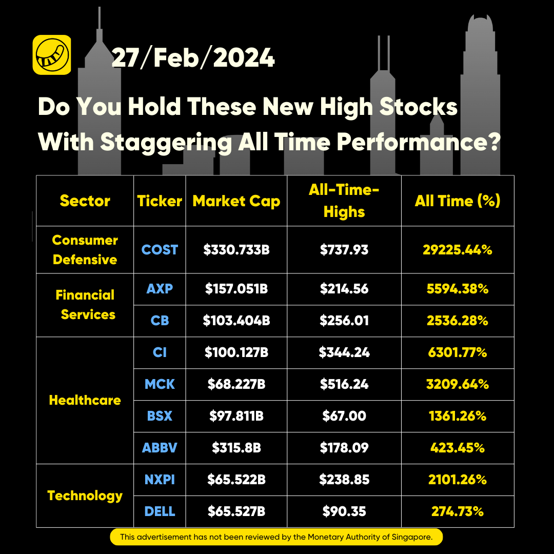 Below are some highlights of the all-time highs with a market capitalization of over $65 billion.
