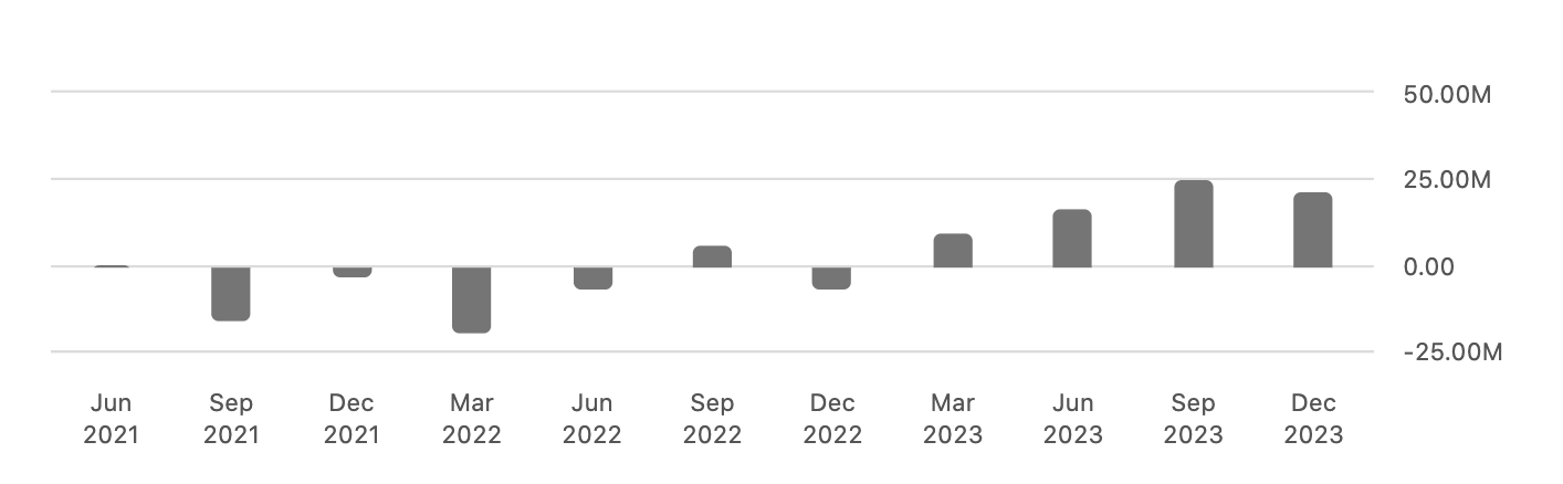 6. Operating Leverage: As $HIMS deploys more verticals and fine tunes its automated pharmacies, its level of personalization will become increasingly harder to imitate at scale. This should yield improved unit economics over time, which are thus far translating into an improved cash flow profile 👇