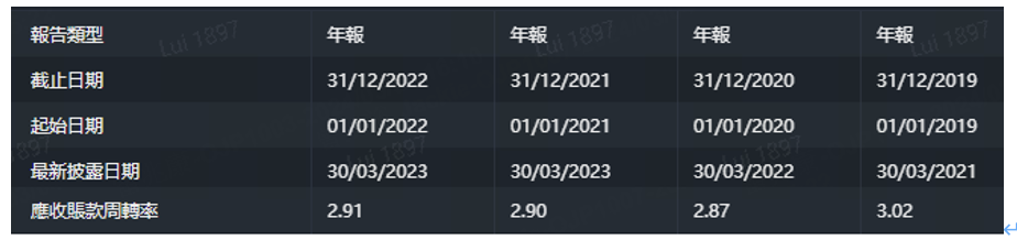 由上圖得知該公司2022年對比2019年,應收賬款周轉率有所減少,收款效率降低,但整體趨向平穩, 收款流程運作穩定。