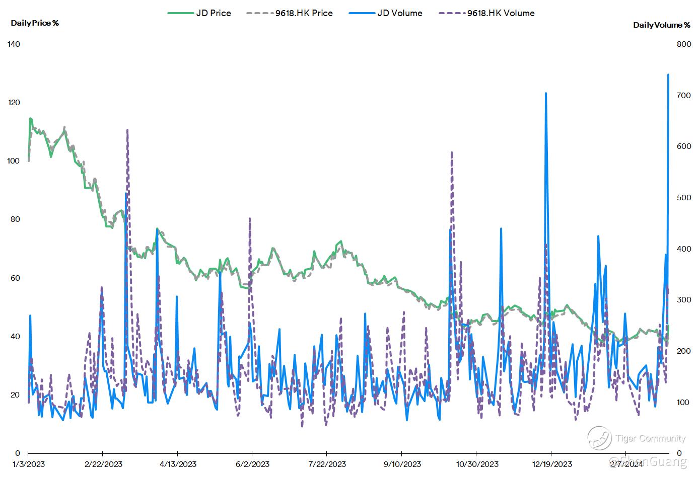 In an earnings season replete with mentions of "AI" and "autonomous technology", the earnings release by Chinese e-commerce giant JD.com Inc ( $JD.com(JD)$ or $JD.com, Inc.(JDCMF)$) - which easily ranks in the Top 5 or Top 10 e-commerce companies worldwide - stood out in that there was virtually no mention of either, despite sustained efforts in AI, Big Data and robotics over several years, continual development of drones for delivery for the better part of a decade, and the release of a ChatGPT-like large language model for enterprises last year. The company was deemed to have beaten analysts' expectations by a handsome margin, leading to a near-immediate rally in after-hours session on the day of the earnings release as well as pre-trading session on the 7th of March. There are several encouraging trends in key line items that highlight how far the company has come in five short years.