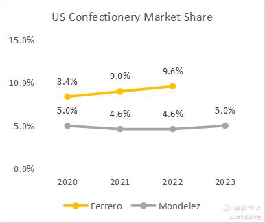 Mars and Hershey’s accounts for half of the total market share. Mars is leading US confectionery market with 25% followed closely by Hershey’s at 23.9%. The remaining players such as Ferrero and Mondelez accounts for 9.7% and 5% respectively. Based on Euromonitor, the top three snacks by brand shares are Reese’s, M&M’s and Hershey’s Chocolate Bar.