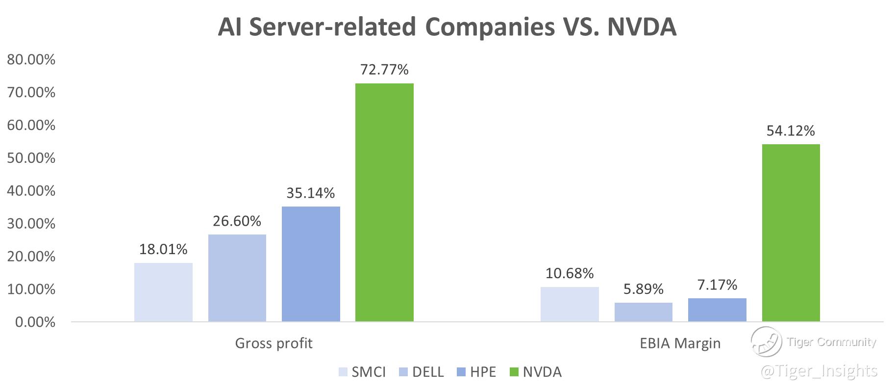 Recently, companies which producing servers for AI such as $SUPER MICRO COMPUTER INC(SMCI)$ and $Dell Technologies Inc.(DELL)$ have experienced significant gains on stock prices. However, looking at the entire AI industry chain, we believe that the competition in the server industry will be fierce, their profits are thin, and the ceiling is low. The AI server makers may experience short term boost, but their long-term valuation expansions are unlikely. Be cautious to speculate!