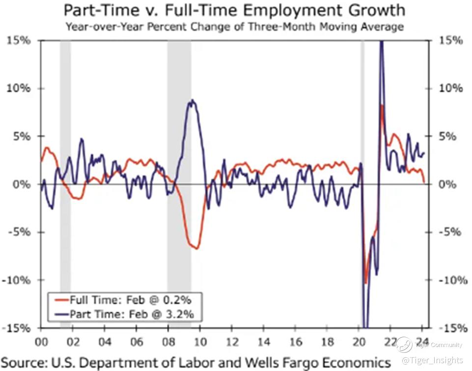 The United States added 275k non-farm jobs in February, slightly higher than the market consensus of 200k. However, the unemployment rate rose by 3.9% in February, higher than market expectations. Meanwhile, average hourly wages increased by only 0.1% month-on-month, and full-time employee wages year-on-year growth declined to almost 0, lower than market expectations. Taken together, this Feb NFP report further confirms that the U.S. job market is weakening.